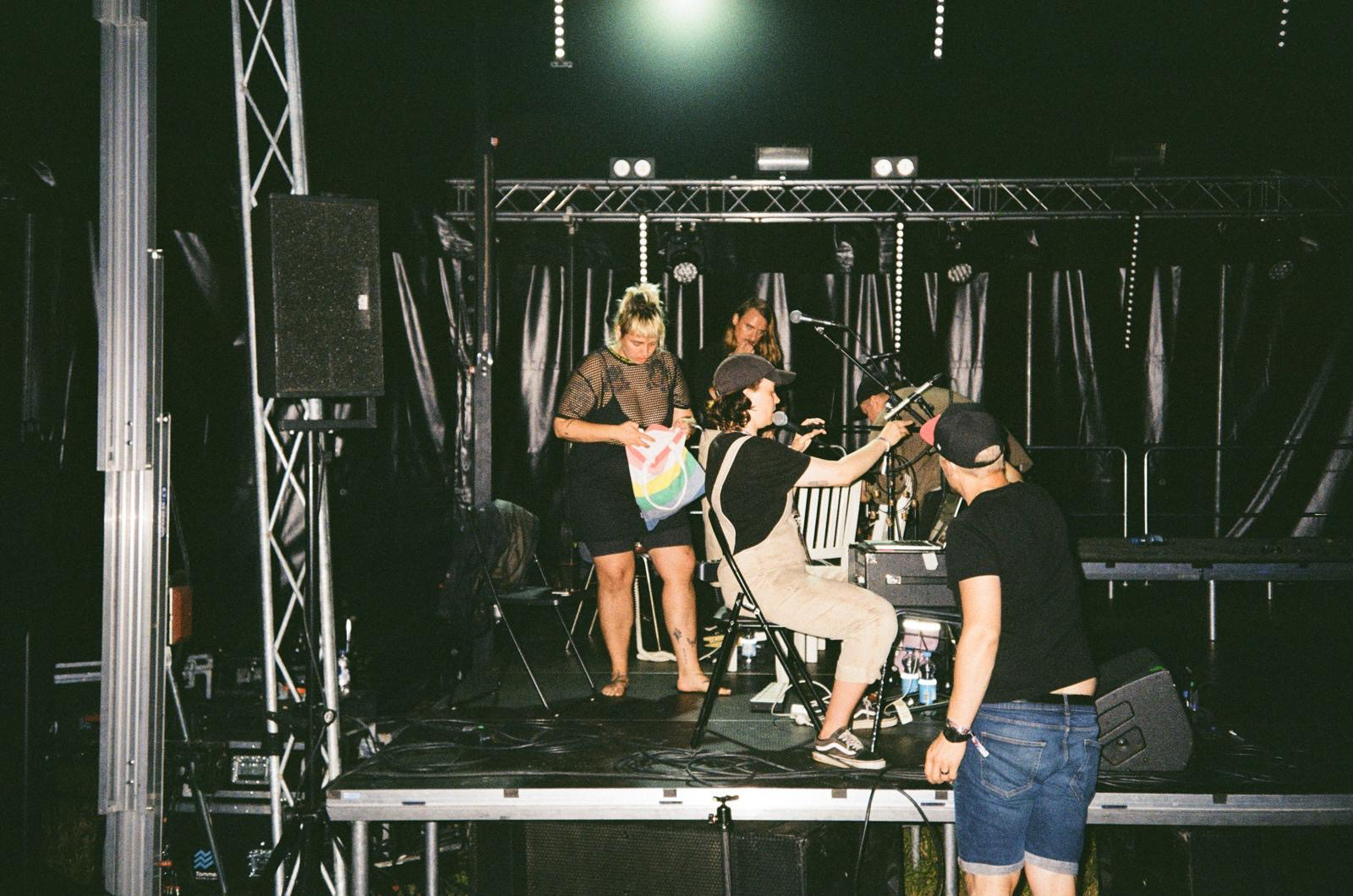 They represent underrepresented communities and want to make more soft spaces for the queer, poor and disabled. They work chaotically together with their partner Joonas Parviainen as a queer collective Tuhmat. Their alter ego Androbaby performs together with Tuhlaajapotka as Dragdollz.