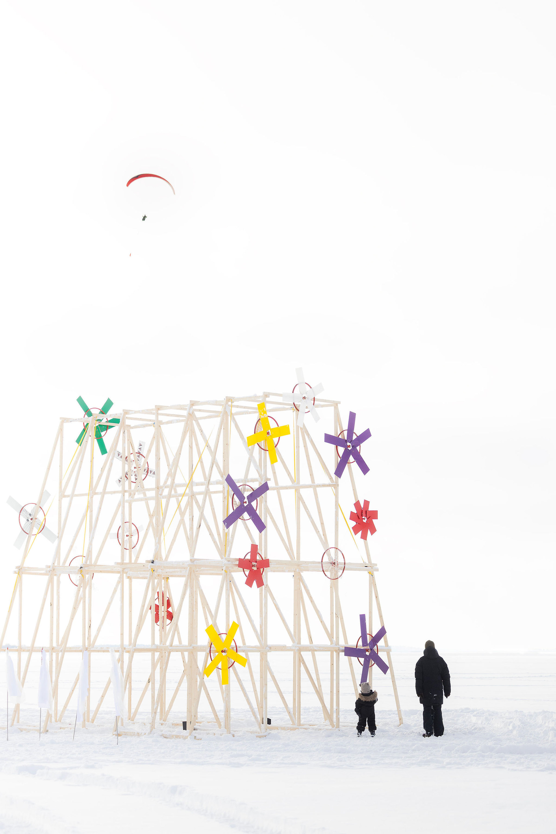 Katedraali on kineettinen installaatio, temppeli luonnonvoimille joka tekee näkyväksi tuulen liikkeen maisemassa. Leikistä ja seremonioista inspiroitunut installaatio on myös paikka pysähtymiselle ja kohtaamiselle, uusille jälkiuskonnollisille rituaaleille, tuulen raivon seurannalle ja lepyttelylle.